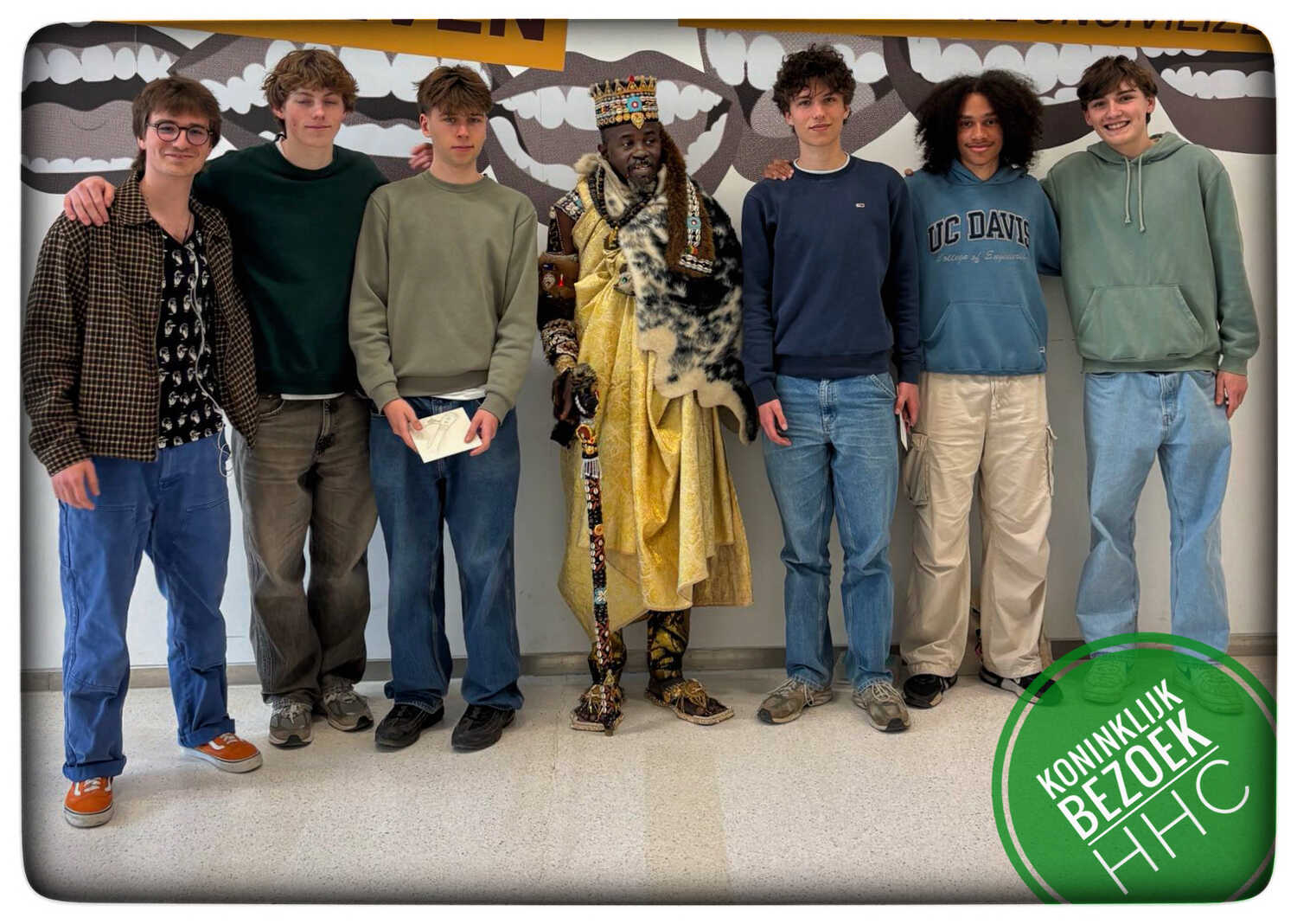 Daarnaast bezochten ze de vaste collectie van het Koninklijk Museum voor Midden-Afrika in Tervuren, waar de leerlingen schetsen maakten van hun favoriete kunstwerk. Tijdens dit museumbezoek was er bovendien een onverwachte en bijzondere ontmoeting. De leerlingen werden verrast door het bezoek van Guide Bamba El Hadj Mohamed Npahi Saanwi, die met een delegatie uit Mali aanwezig was. Hij wordt “Chef suprême des Royaumes Unis d’Afrique” genoemd en maakt een Europese tournee om de samenwerking en de evenementen tussen Afrika en Europa te promoten. Zijn indrukwekkende gewaad en kroon maakten grote indruk, en hij sprak de klas kort toe. Het werd een unieke ervaring waarbij kunst, cultuur en internationale ontmoeting samenkwamen.