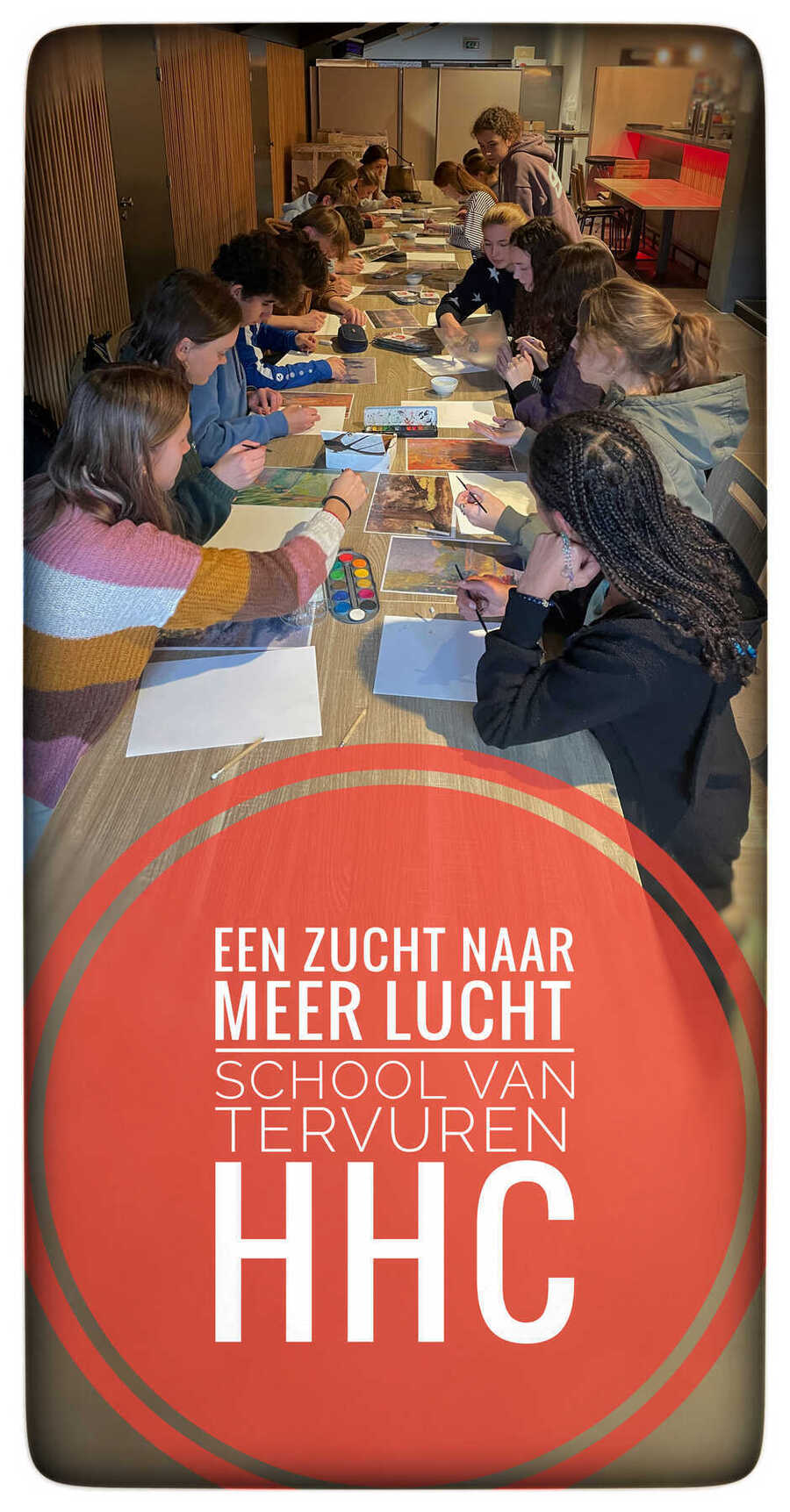 De leerlingen van het zesde jaar 'Vrije Ruimte art & English' trokken naar cc De Warandepoort voor een bezoek aan de expo 'Een zucht naar meer lucht'. Deze tentoonstelling, gerealiseerd door de v.z.w. De Vrienden van de School van Tervuren, belicht het vaak vergeten verhaal van vrouwelijke kunstenaars die met penseel en palet hun eigen horizon verruimden. In een tijd waarin de samenleving hen beperkte tot kleine rollen en stille kamers, trokken zij naar buiten, naar het open landschap, en droegen zo bij aan een kunststroming die smachtte naar vrijheid.