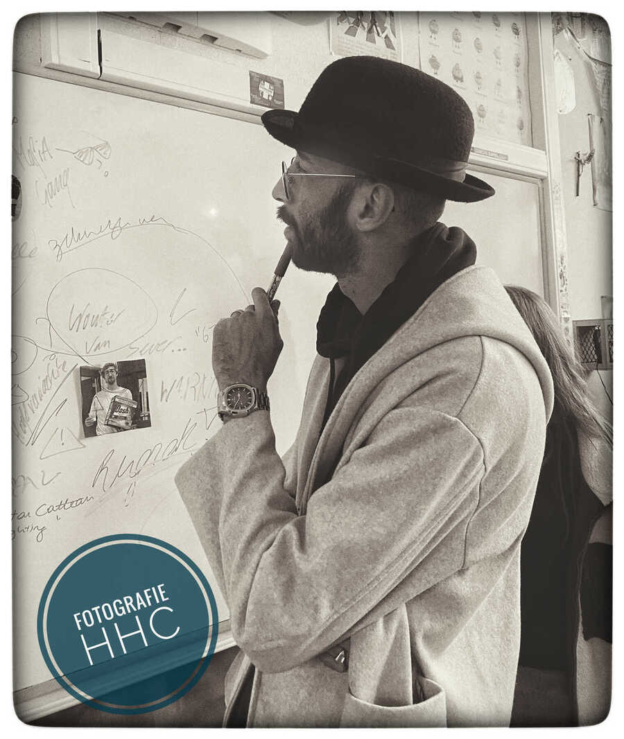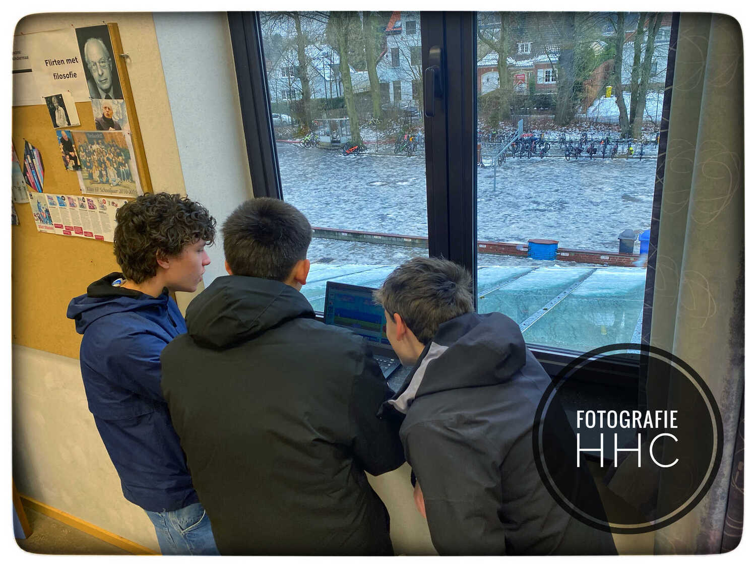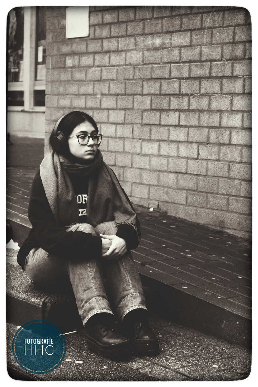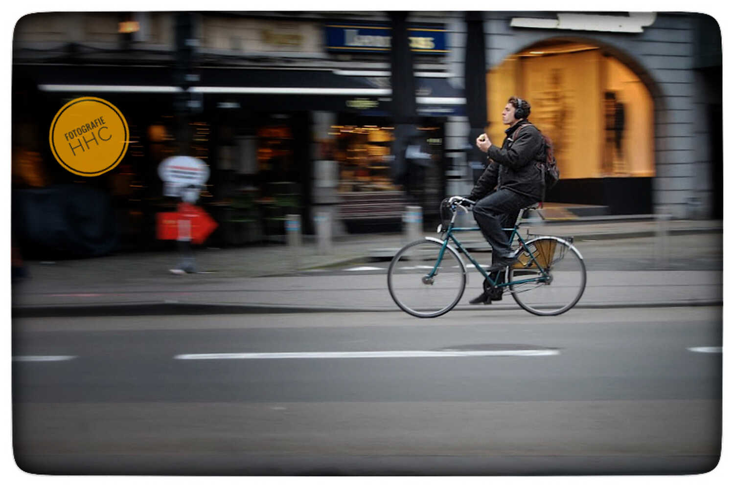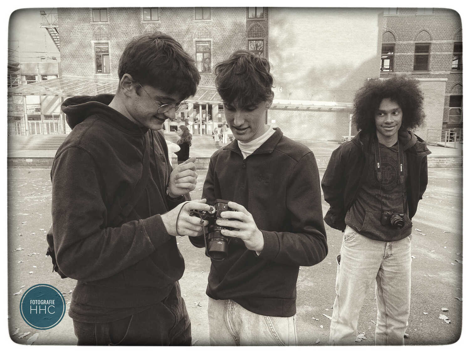 Daarnaast trokken we samen naar Leuven voor straatfotografie. De leerlingen observeerden het stadsleven en oefenden op pannen: een techniek waarbij je de camera meebeweegt met het onderwerp, zodat dat scherp blijft tegen een dynamisch, bewogen achtergrondbeeld.
