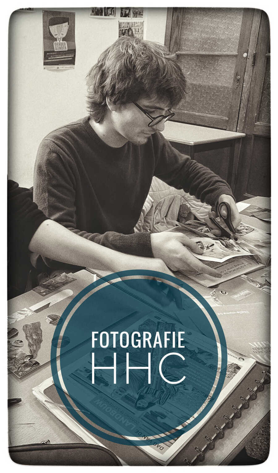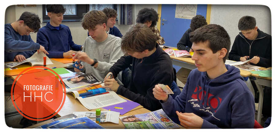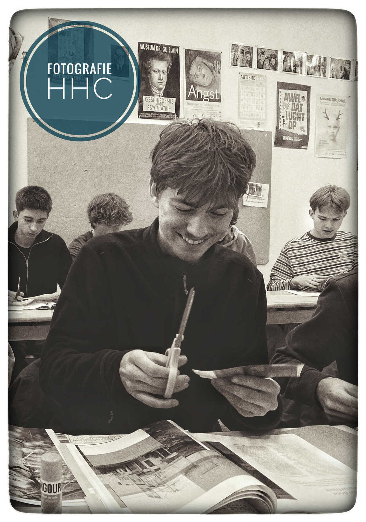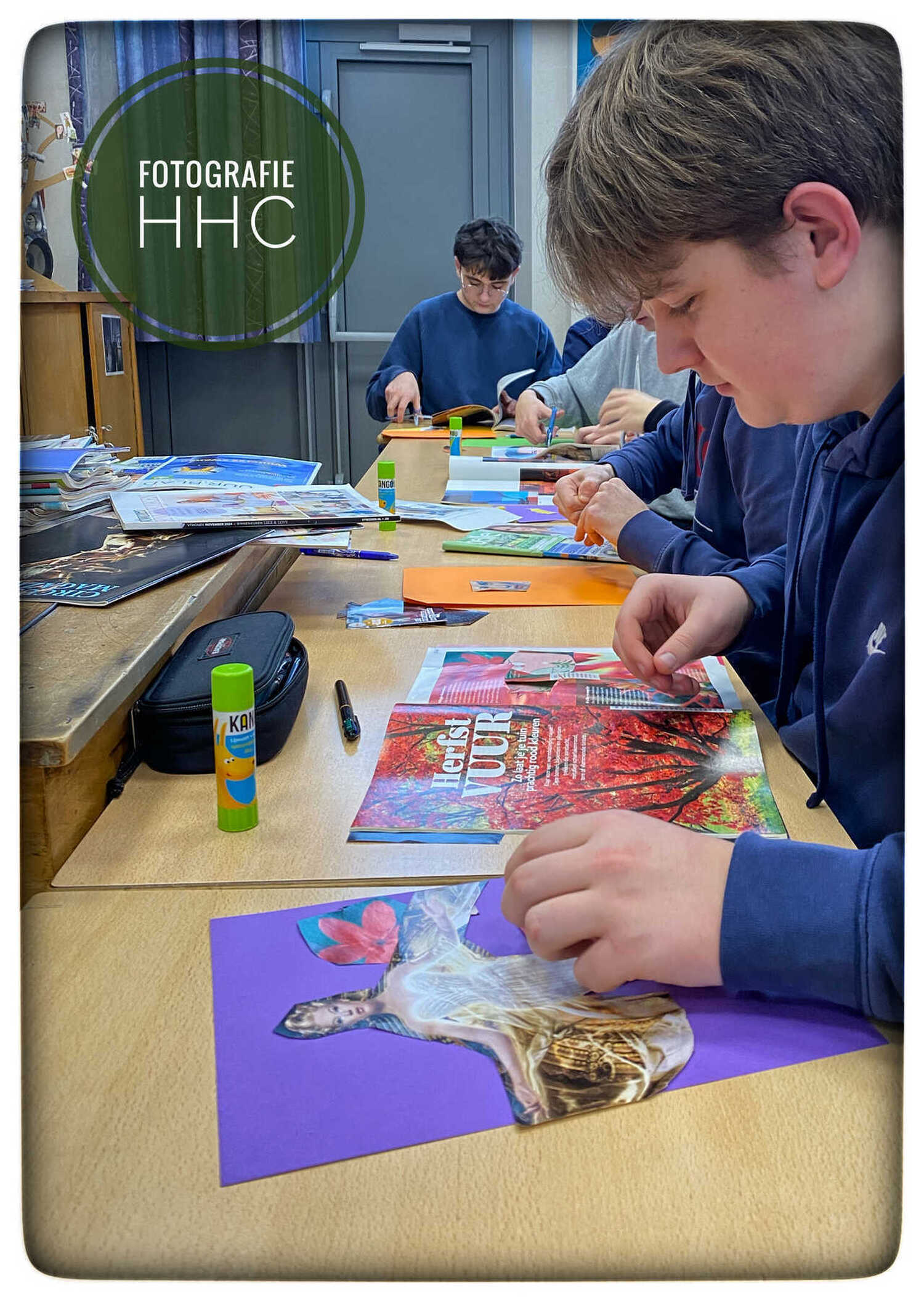 We werkten zoveel mogelijk manueel om het fotografisch inzicht te versterken. Ze maakten elk een eigen fotoreeks. Die reeks moest ofwel thematisch samenhangen, of gevormd worden door eenzelfde stijl of techniek. Ook de oefeningen rond kleur en vlakvulling pakten we bewust op een ouderwetse manier aan, met collages en knipwerk. Zo leerden de leerlingen écht kijken naar compositie en kleurgebruik.