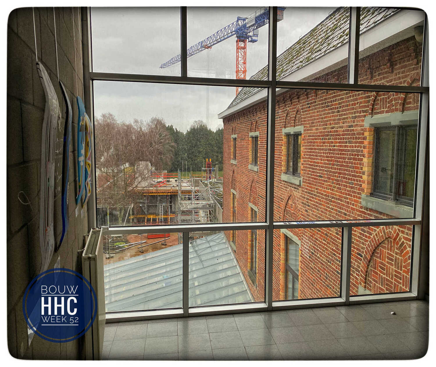 Tijdens de Allerheiligenvakantie werd het paadje tussen het sportveld en de speelplaats opnieuw vrijgemaakt. Zo kunnen de leerlingen zich opnieuw vlot verplaatsen naar het G-blok, het sportveld, het HHC-park en de bushalte aan de Astridlaan. De bouw van het nieuwe gebouw verloopt intussen gestaag en het wordt steeds indrukwekkender om te zien hoe het dag na dag verder de hoogte ingaat. Tijdens de kerstvakantie nemen de bouwvakkers even een welverdiende rust, maar vanaf 2026 kijken we uit naar nog meer zichtbare vorderingen.